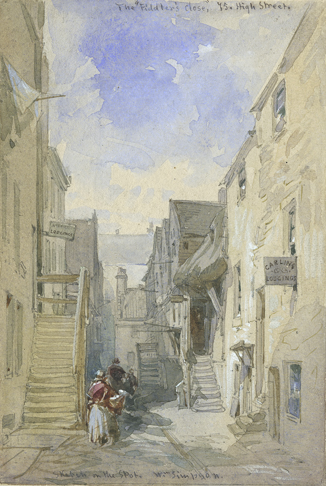 Examining art of the period can also allow for a glimpse at the character of this area of northern Liberton Parish of the 1800s. David Robert’s 1846 watercolour landscape painting of the Craigmillar ruins and the land surrounding it shows a vast swathe of arable land dotted only with a few country houses and cottages; in the right foreground two men are at work with cattle. Not visible here, however, are the collieries at Niddrie and Newcraighall.