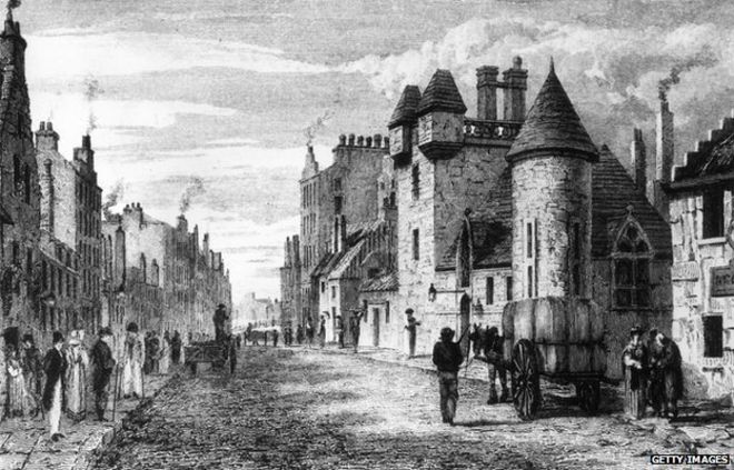 Housing for these agricultural workers was often provided for them as a part of their employment and, in the Lothians, often came in the form of a cottage or, for the unmarried, of a communal bothy. A discussion on the conditions and relations of these agricultural dwellings can be found in my previous blog, but an example of these houses in the Craigmillar and Niddrie areas can also be found above, in the engraving of Birdgend farm. However, an example of the conditions suffered by those in other industries is offered in the form of an engraving and description of the village of Gilmerton, again in Tom Speedy’s book. Though Gilmerton is not within our area of study, it certainly was linked to the area both through occupying space on the Craigmillar estate and through connections to the extensive mining works at Niddrie. From the engraving we can see, much like the farming communities in the Lothians, that the cottage appears to be the prevailing form of housing for those employed in other industries.