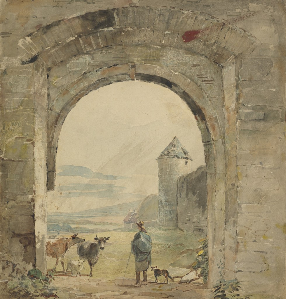 Anne Gibson Nasmyth’s View Through the Gateway of Craigmillar Castle, Edinburgh, with Shephard and Animals